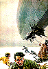 Raumsoldaten reiten im Wasser auf Meereslebewesen, dahinter Raumjäger und aufspritzendes Wasser vor rotem Himmel, - siehe auch