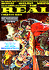 nach vorn blickender Mann mit düsterem Gesichtsausdruck und wehendem Haar, dahinter Panzer mit Besatzung und darüber Rakete im Tiefflug |