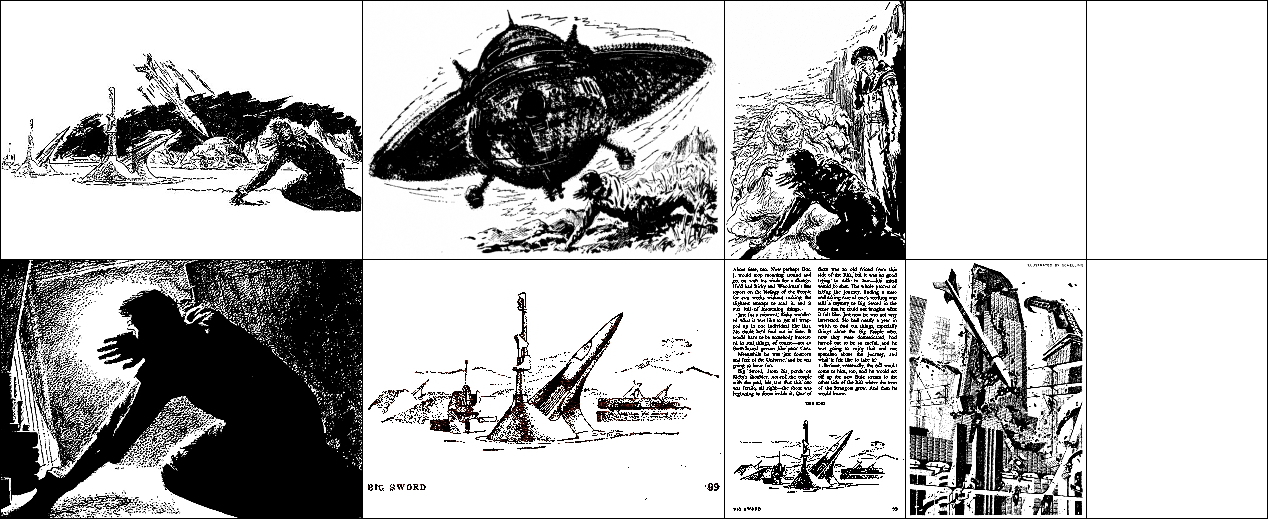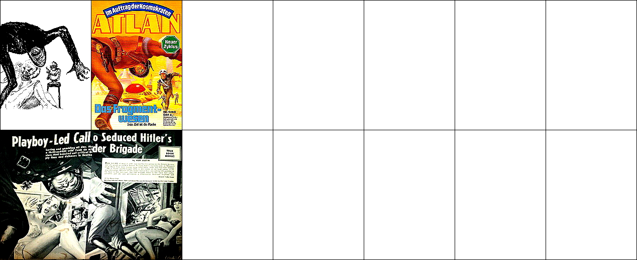 1 und 2 gleiches Bild, 2 seitenverkehrt, 3 Nachzeichnung ohne Gucky, seitenverkehrt, 4 und 5 Nachzeichnung für Neuauflage, weitere mit ähnlicher Körperhaltung von Gucky, 11 möglicheweise Vorbild für die Körperhaltung, speziell in 1 |