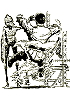 ähnliche Körperhaltung, wobei sich in den anderen Bildern ein Terraner gegen ein anderes Wesen verteidigt, 4 Vorbild für Nachzeichnungen |