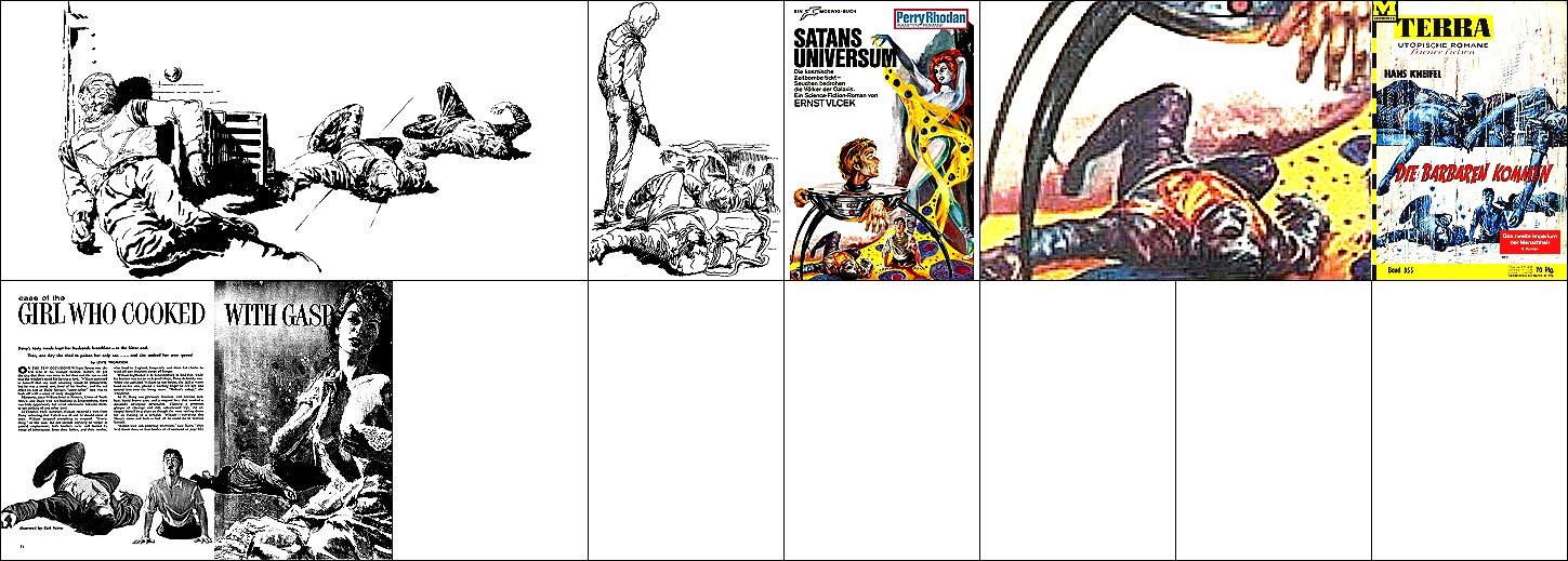 sehr ähnliches Motiv, 1 - 7 gleiches Bild, Nachauflagen mit verändertem Hintergrund, in 2 wurde das Titelbild für den falschen Roman verwendet, 8 - 13, 14 - 15 gleiches Bild, 15 mit überarbeitetem Hintergrund, 17 ist Vorbild für Nachzeichnungen |