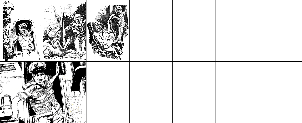 1 - 6 gleiches Bild, 6 Hintergrund überarbeitet (grün eingefärbt), 8 und 9 Neuinterpretationen für japanische Ausgabe,weitere ähnliches Motiv, 15 könnte das für den Mann in1 sein (man beachte die Beinhaltung) |
