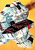 Gruppe von Terranern und Außerirdischen im Kampf, ein Terraner schießt auf fallenden Roboter |