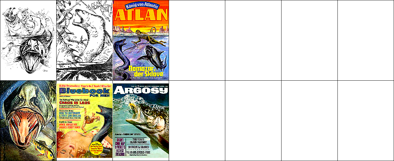1 - 3 gleiches Bild, 2 und 3 seitenverkehrt, der Fisch ist von 8 nachgezeichnet |