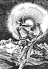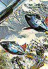 1 - 4 gleiches Bild, der Kampfjäger dürfte eine MIG-29 Fulcrum sein, die 3 kleinen Raumboote im Hintergrund sind wahrscheinlich von 9 bzw. 10 nachgezeichnet, das abstürzende Raumboot unten ist von 11 bzw. 12 entnommen |