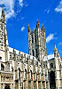Schießduell in der Luft zwischen zwei Raumfahrern vor der Kathedrale von Canterbury |