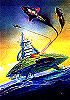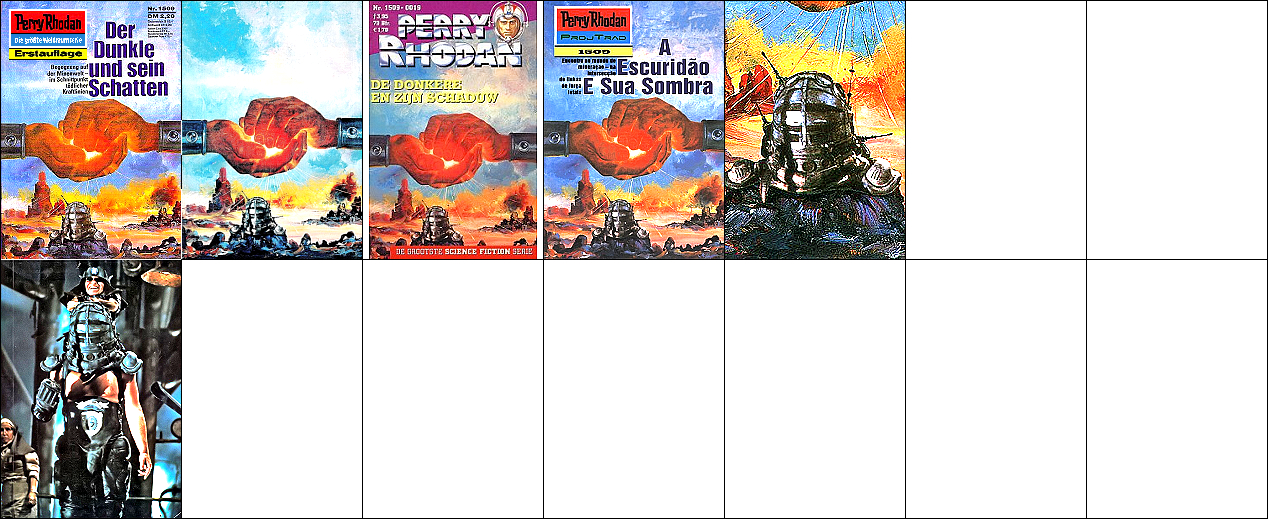1 - 7 gleiches Bild, teilweise Ausschnitte, der Ritter ist von 15 nachgezeichnet, die beiden aufwärts fliegenden Raumboote dürften von 17 bzw. 18 nachgezeichnet sein |
