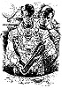1 - 5 gleiches Bild, das Echsenwesen dürfte von 8 inspiriert sein, speziell von der Körperhaltung des Mannes, die Frau ist mit Ausnahme der Kopfhaltung von 9 nachgezeichnet, das auch als Vorbild für den liegenden Mann in 6 dient |