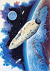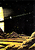 schemenhaft angeleuchtetes Raumboot zwischen Planeten |