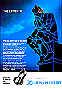 schattenhafter Mann sitzt auf Sockel über Feld mit Quadraten, auf dem Tetraeder stehen |