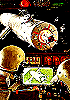 1 - 4 gleiches Bild, 6 ähnliches Motiv, 8 - 10 gleiches Bild, Vorlage für Nachzeichnungen bzw. die Figur ist in 1 als Collage eingebaut und leicht übermalt, davon einmal gespiegelt, das Gerät in der unteren Hälfte von 1 ist vom Waffenarm des Roboters in 11 übernommen |