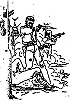 1 - 4 gleiches Bild, der schießende Mann kommt auch in 6 vor und ist von 8 nachgezeichnet (man beachte die Pistolen in beiden Händen), sein Kopf und die Hände in 1 sind von 8 ausgeschnitten und eingeklebt |