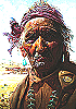 Köpfe von zwei alten Männern mit um den Kopf gebundenen Tüchern, dahinter Explosionswolke |