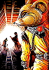 Außerirdischer auf Thronsessel, davor blasenartiges rotes Gebilde