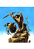 nackter Mann mit Kristallkugel wird von Schlangen bedroht