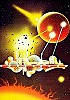 brennende Weltraumstadt mit Türmen und Kuppeln