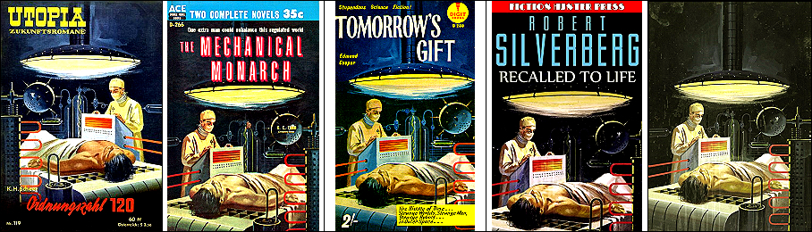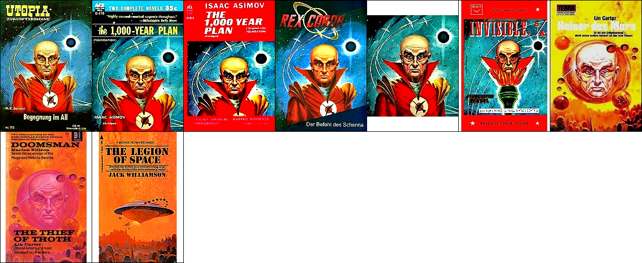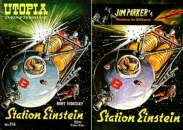 möglicherweise ist 1 von 2 inspiriert, weil ähnliche Konstellation mit Station, Rakete und Erde und das Raketenraumschiff hat auch genau die gleiche Farbkomposition mit gelbem Anstrich und rotem Ring wie in 2; 2 - 4 gleiches Bild