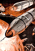 Gruppe von Raketenraumschiffen von vorne vor Mond