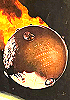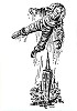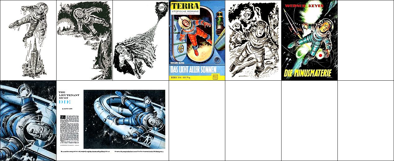 fliegender Raumfahrer mit erschrecktem Gesicht, siehe auch