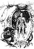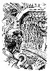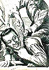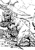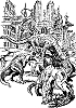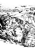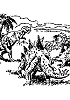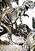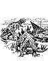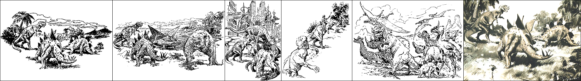 Bild 1 komplett schwarzweiß von 6 nachgezeichnet, 2 - 3 teilweise, der Ceratosaurus mit den nashornähnlichen Höckern auf dem Schädel findet sich auch in 4 und seitenverkehrt in 5 wieder |