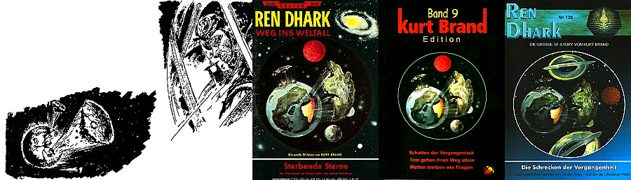 2 - 8 gleiches Bild, für Neuausgaben komplett von 1 nachgezeichnet, 9 Inspiration für den Hintergrund mit Raumjäger und Explosion |