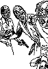 1 - 6 gleiches Bild, 6 seitenverkehrt, in 7 findet sich der vordere Mann wieder, 8 Vorbild für Nachzeichnungen des Soldaten im Vordergrund, 8 - 9 gleiches Bild, 10 Vorbild für die beiden Männer, von einer den anderen stützt |