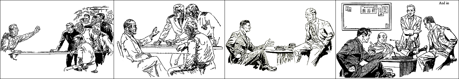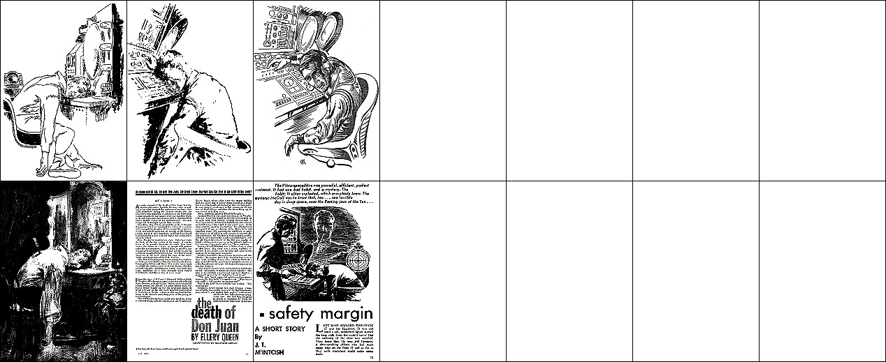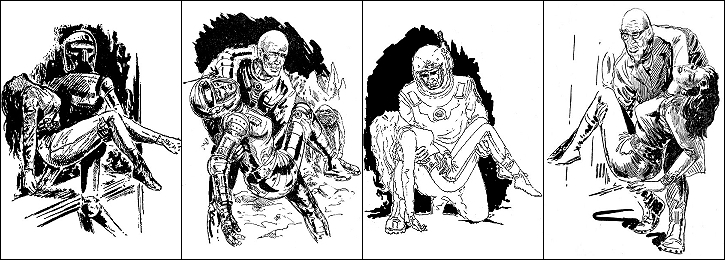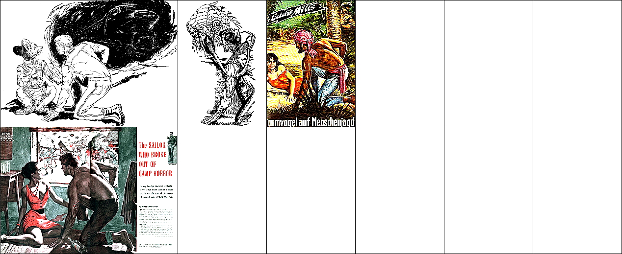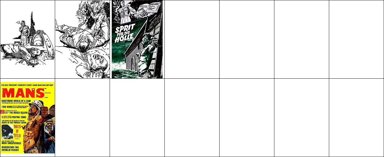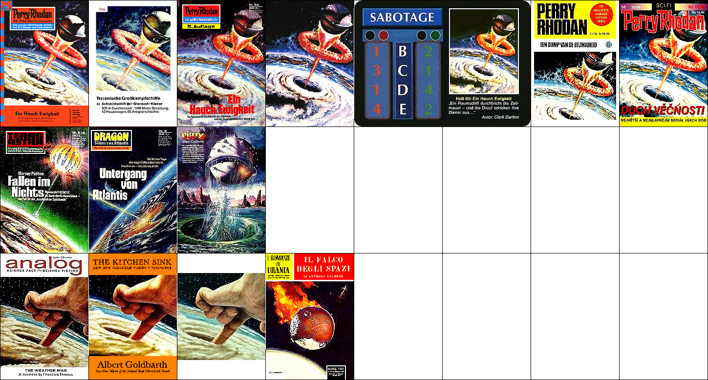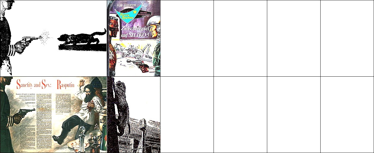 ähnliches Motiv, 2 - 6 Neuzeichnung von 1 für Neuauflage, 7/8 für HC-Ausgabe, 9 für Leihbuchausgabe, 10 -12 gleiches Bild, 5 und 12 seitenverkehrt, 15 Vorbild für Nachzeichnungen |