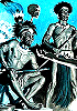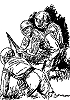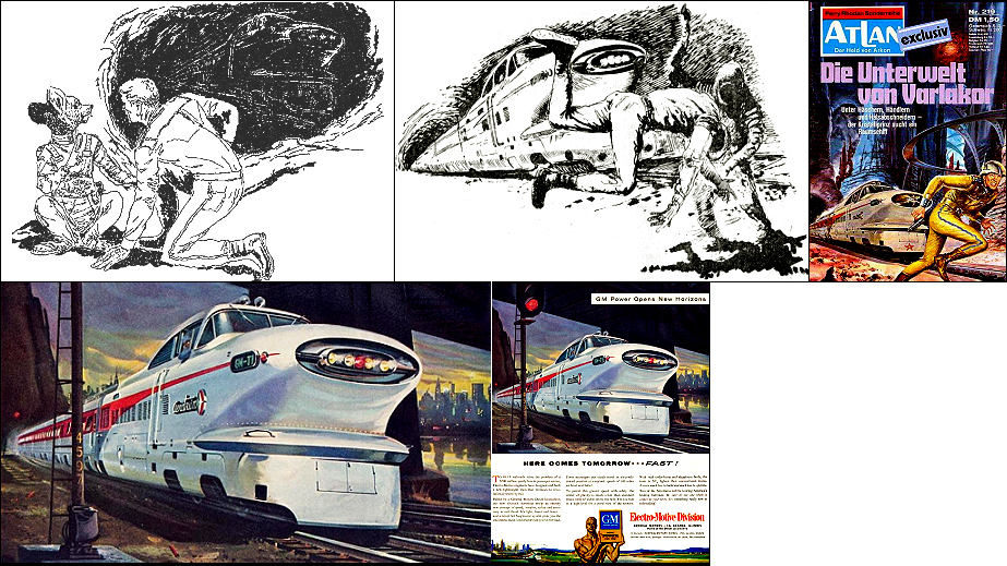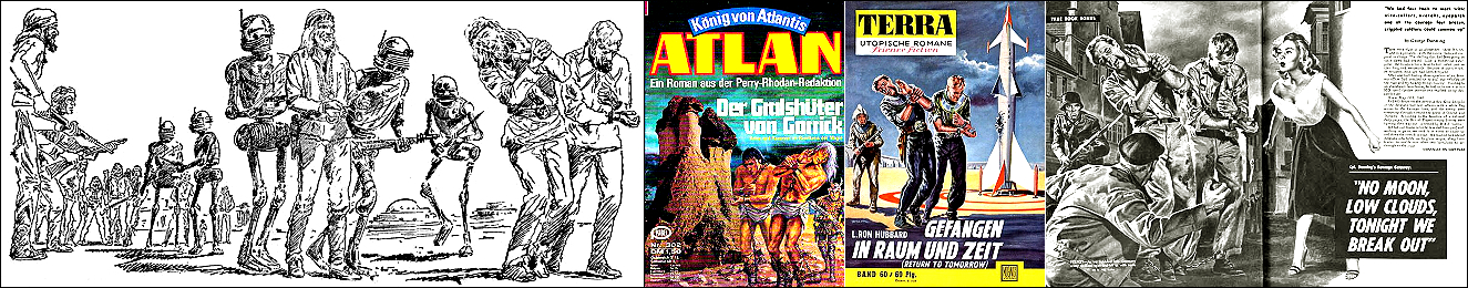 das Motiv ist von 8 nachgezeichnet, der rechte Soldat taucht in den weiteren Bildern wieder auf, in 2 als Schreckwurmreiter, 3 ist davon für die Neuauflage des Romans nachgezeichnet |