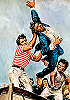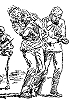 gleiche Körperhaltung, 2 seitenverkehrt, restliches Bild unterschiedlich, die Gruppe ist von 4 nachgezeichnet |