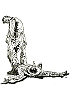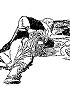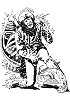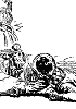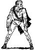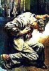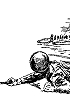 geduckt laufender Mann mit nach vorn gestreckter Hand |