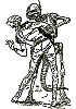 Mann zieht anderen Mann bzw. Außerirdischen, der am Boden liegt |