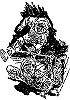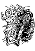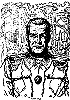 Mann, der zur Seite schaut, mit Gucky bzw. Insektenwesen |