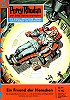 Gucky, auf seinen Schwanz gestützt, schießt auf fremdartiges Artefakt |