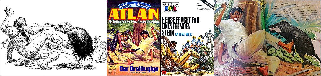ähnliche Körperhaltung, wobei sich in den anderen Bildern ein Terraner gegen ein anderes Wesen verteidigt, 4 Vorbild für Nachzeichnungen |