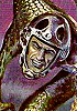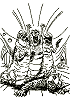 liegender Unither verteidigt sich mit dem Fuß gegen Vogelwesen |