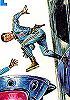 fallender Mann, der einen Arm abgewinkelt nach oben hält |