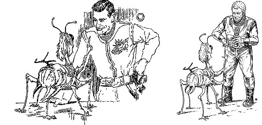 Mann und Außerirdischer mit Spinnenkörper in Unterhaltung |