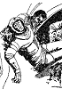 Kopf eines Raumfahrers vor kämpfenden Robotern, Hintergrund - siehe auch