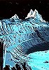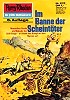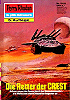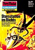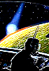 Raumfahrer hängt an Felsen, im Hintergrund Oberfläche einer Hohlwelt |