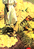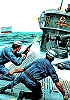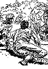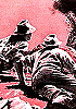 1 - 6 gleiches Bild, 2 seitenverkehrt, 6 leicht nachbearbeitet (Hintergrund orange), der sich duckende Mann rechts ist von 8 nachgezeichnet |