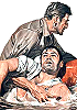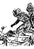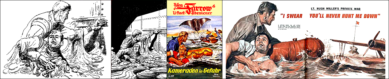 ähnliches Motiv, 1 - 5, 6 - 10, 11 - 12, 14 - 15, 22 - 27 gleiches Bild, 28 bearbeiteter Ausschnitt von 22 (zweiter Mann entfernt und Bild links erweitert), 13 - 15 zeigt den Stienwerfer von vorn bzw. von der Seite, 22 Vorbild für Nachzeichnungen, 11 davon praktisch 1:1 nachgezeichnet |