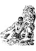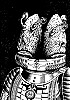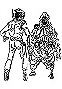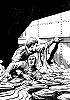 hockender Terraner diskutiert mit Gucky bzw. anderem Außerirdischen und gestikuliert mit einer Hand |