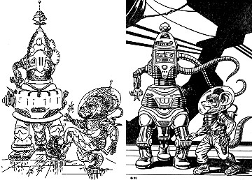 Gucky und dreibeiniger Roboter mit Tentakelarmen |