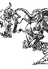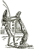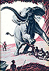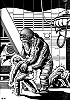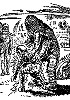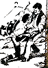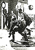 Bild für Neuauflage nachgezeichnet, ein Mann mit sehr ähnlicher Körperhaltung kommt auch in 3 vor, 3 - 5 gleiches Bild, 5 ist Vorbild für die Männergruppe in 1, 6 für den zusammenbrechenden Mann in 1 und für beide Männer in 3 |