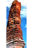 fliegender Raumfahrer neben Felssäule |