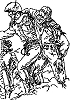 Soldat hält verwundeten Kameraden |