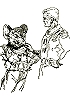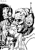 1 - 5 gleiches Bild, 2 seitenverkehrt, in 6 ist ein Roboter, der die Waffe ähnlich hält, einer der liegenden Männer und ein Mann, der wie der Roboter die Waffe nach unten hält, finden sich seitenverkehrt in 7 - 9 wieder, 15 Vorbild für Nachzeichnungen |