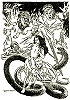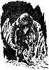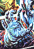 affenartiger Außerirdischer mit Vogelkopf beugt sich über liegenden Terraner, siehe auch