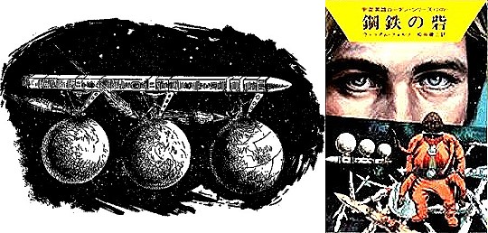 schlankes Walzenraumschiff, das mit 3 Kugeln verbunden ist |