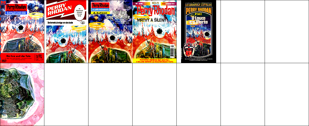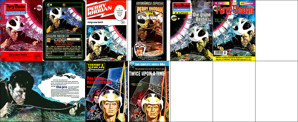 1 - 8 gleiches Bild, 2 und 5 seitenverkehrt, 4 Ausschnittt, 9 Motiv für Hardcoverausgabe, 10 für japanische Ausgabe nachgezeichnet |